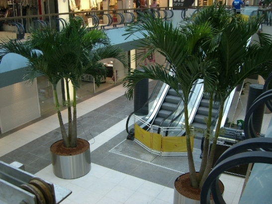 Rezultatul final: palmierii Veitchia intr-un Mall din Romania. Lucrare executata in anul 2008.