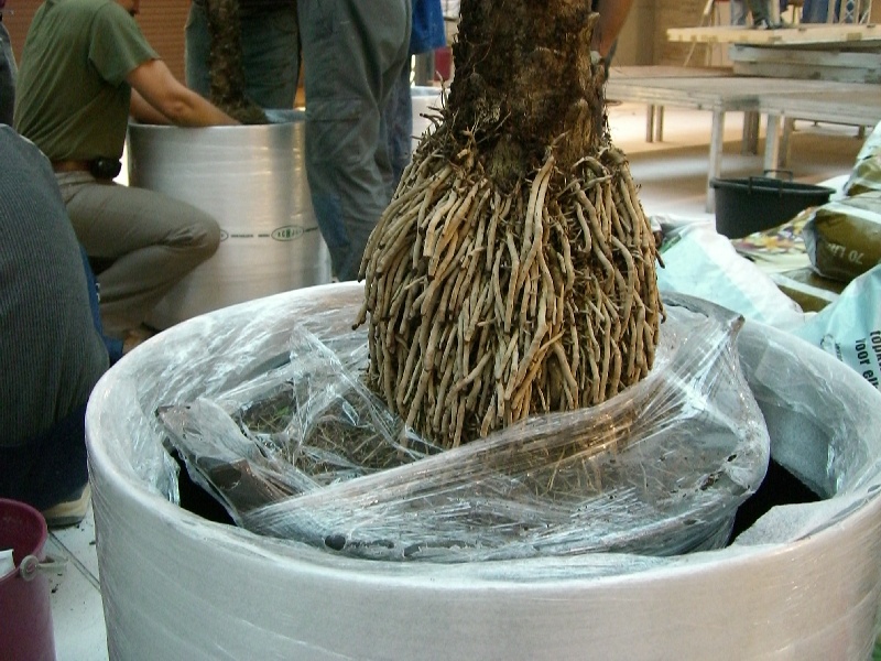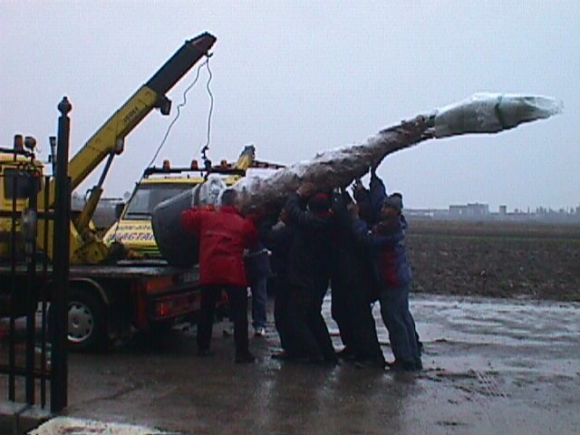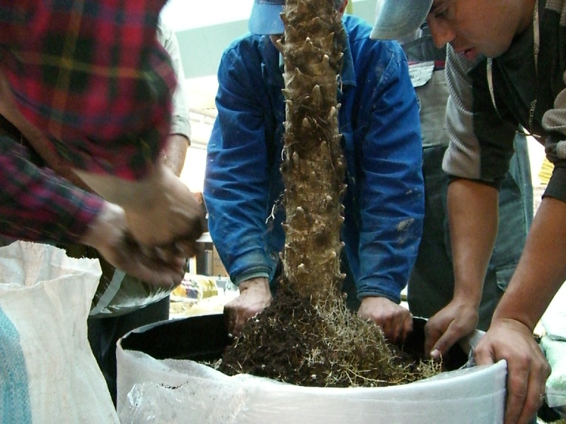 Manipularea plantelor mari (in imagine un palmier de 5m) inainte de livrarea la client.