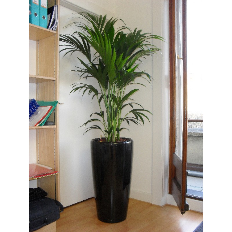In combinatia prezentata am plantat o planta HOWEA (KENTIA) 24/140 cm intr-un ghiveci inteligent LECHUZA RONDO H 56 cm L 32 cm, cu sistem de udare.
