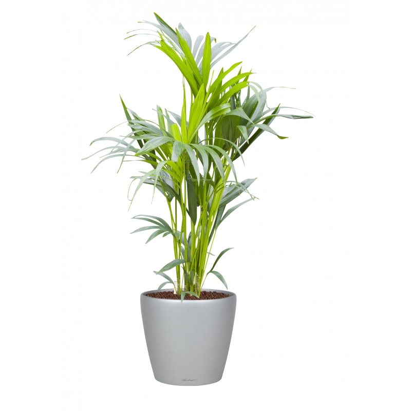 In combinatia prezentata am plantat o planta HOWEA (KENTIA) 24/140 cm intr-un ghiveci inteligent LECHUZA classico argintiu, LS 35 (diametru exterior 35 cm, cu sistem de udare).